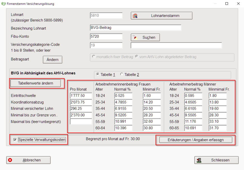 Für alle Kunden, welche Pinus Lohn im Einsatz haben und mit der BVG-Tabelle arbeiten, gilt es, diese im neuen Jahr vor der ersten Lohnabrechnung anzupassen. Haben Sie Ihre Angestellten bei der Agrisano Pencas versichert, können Sie die neuen Werte für den Plan A aus den untenstehenden Printscreens entnehmen und entsprechend im Lohnprogramm eintragen.