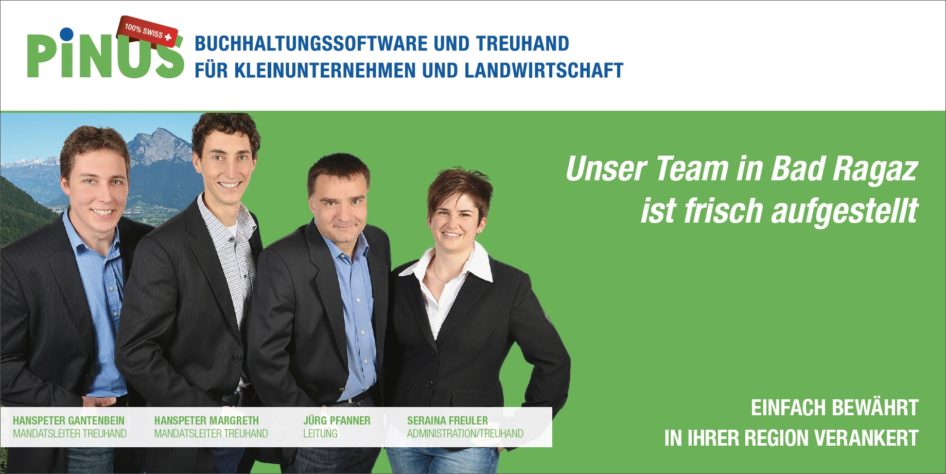 Bis Herrn Jürg Pfanner bei uns einsteigen kann, werden wir eine personelle Unterbesetzung zu überbrücken haben. Unser bewährtes und eingespieltes Team mit Seraina Freuler, Hanspeter Gantenbein und Hanspeter Margreth wird Ihnen, liebe Kundinnen und Kunden, wie bis anhin mit grossem Einsatz zur Verfügung stehen. Ebenso versuchen wir von unserem Hauptsitz aus, bestmöglich das Team zu unterstützen. Wir danken Ihnen aber heute schon für Ihr Verständnis, falls gewisse Verzögerungen eintreffen sollten.