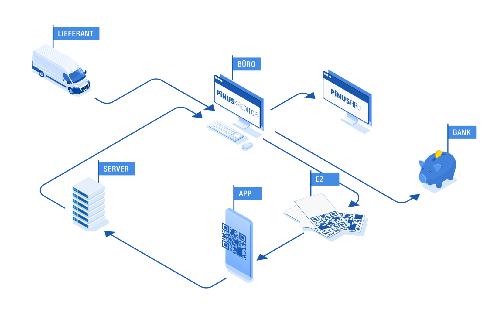 Pinus Kreditor ergänzt Ihre Pinus Finanzbuchhaltung optimal und verbindet Kreditorenverwaltung, Zahlungsverkehr und Buchhaltung zu einem durchgängigen Prozess.